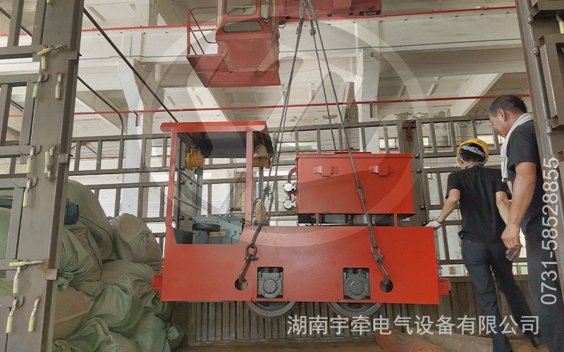 防爆型2.5噸湘潭電機車裝車前,工作人員對電機車進行了全方位的檢查和調(diào)試,確保各項性能指標都達到更佳狀態(tài),隨后用專業(yè)的固定裝置將其牢牢固定在運輸車輛上,保障運輸過程中的安全。